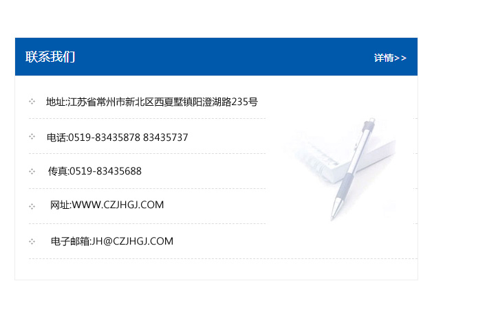 地址:常州市新北區友邦商務大廈1幢16、17層  電話:0519-85101652  傳真:0519-85112595  郵編:213022  網址:www_cz-jiayue_cn.dongshun56.com  郵箱:xiajifengaa@163.com